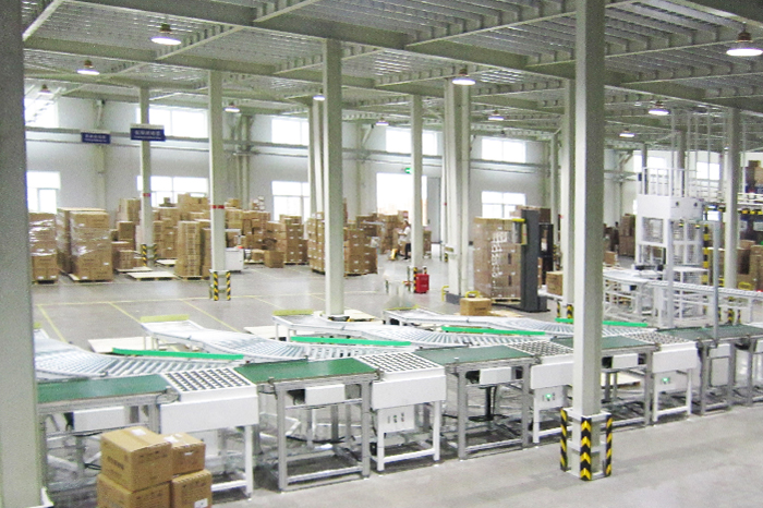 (4)分揀道口是已分揀商品脫離主輸送機(jī)進(jìn)入集貨區(qū)域的通道,一般有鋼帶、皮帶、輥筒等組成滑道,使商品從主輸送裝置滑向集貨站臺(tái),在那里由工作人員將該道口的所有商品集中后或是入庫(kù)儲(chǔ)存,或是組配裝車并進(jìn)行配送作業(yè)。